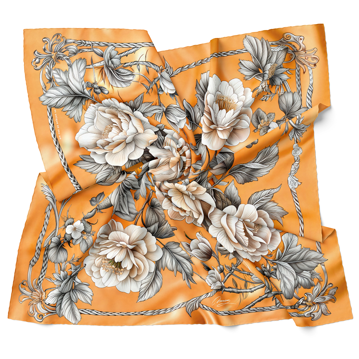 Nova kolekcija marame Tatiana opisuju stil i karakter geometrije, ornamenata i paterna koje će upotpuniti svaku odevnu kombinaciju i ostaviti glamurozan utisak. Napravljena je od neprozirne, glatke italijanske svile, čuvene po sjajnoj površini glatkoj kao staklo, boje nanesene na ovoj svili su punog inteziteta.