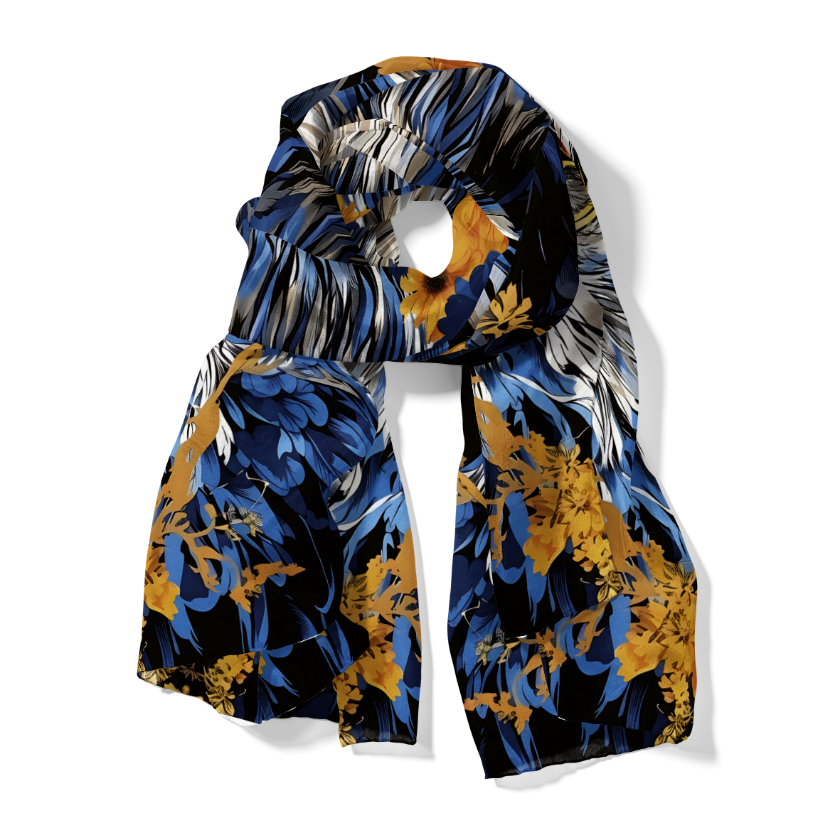 Nova kolekcija ešarpe Tatiana opisuju stil i karakter geometrije, ornamenata i paterna koje će upotpuniti svaku odevnu kombinaciju i ostaviti glamurozan utisak. Napravljena je od neprozirne, glatke italijanske svile, čuvene po sjajnoj površini glatkoj kao staklo, boje nanesene na ovoj svili su punog inteziteta.