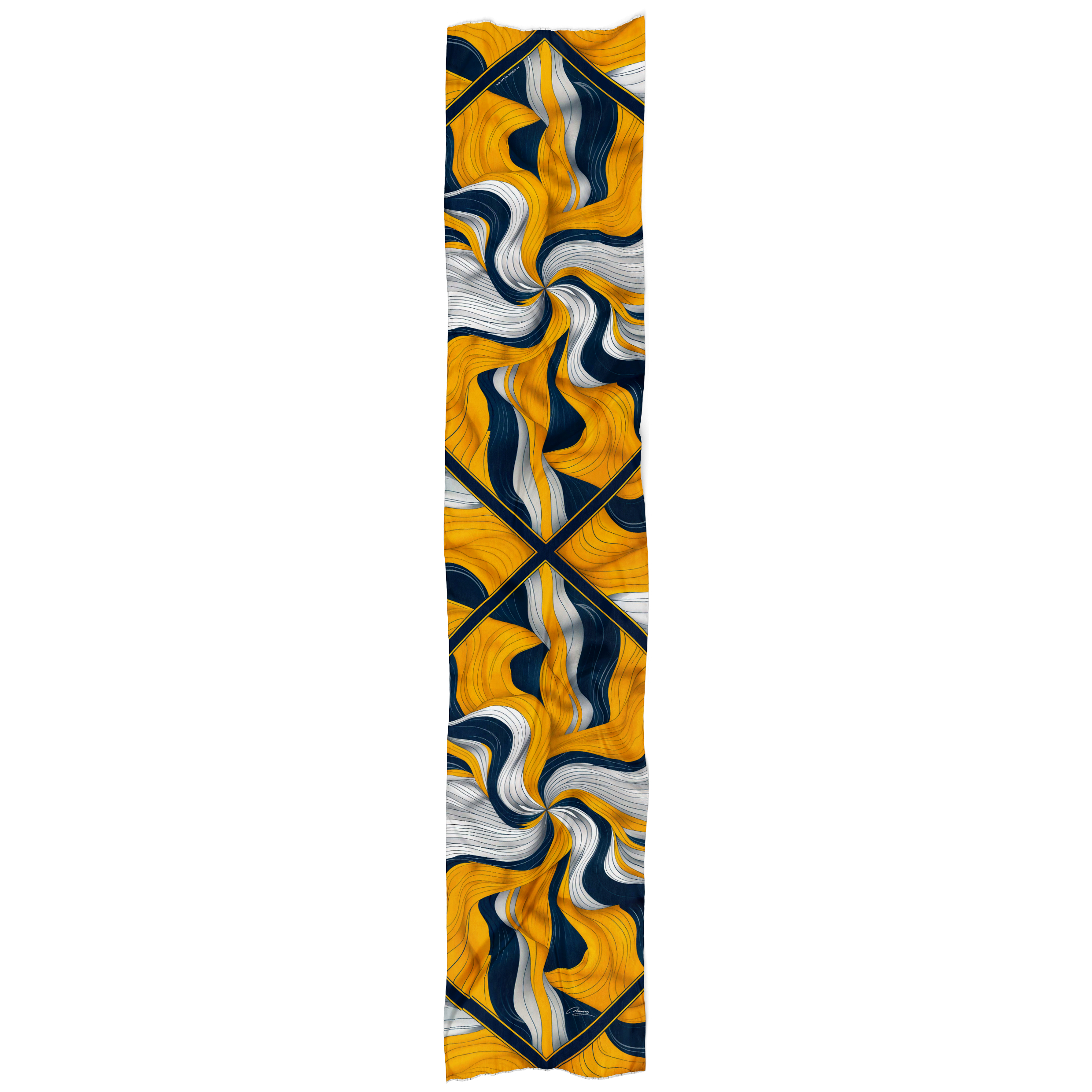 Smeli Duh Ova marama, sa moćnom kombinacijom tamnoplave, žute i bele, oslikava smelu i energičnu prirodu. Idealna je za damu koja želi da se izdvoji, ovaj dizajn podstiče samopouzdanje i izražavanje ličnosti. To je upečatljiv detalj koji donosi živahan dodir hrabrosti i jedinstvenosti svakoj kombinaciji