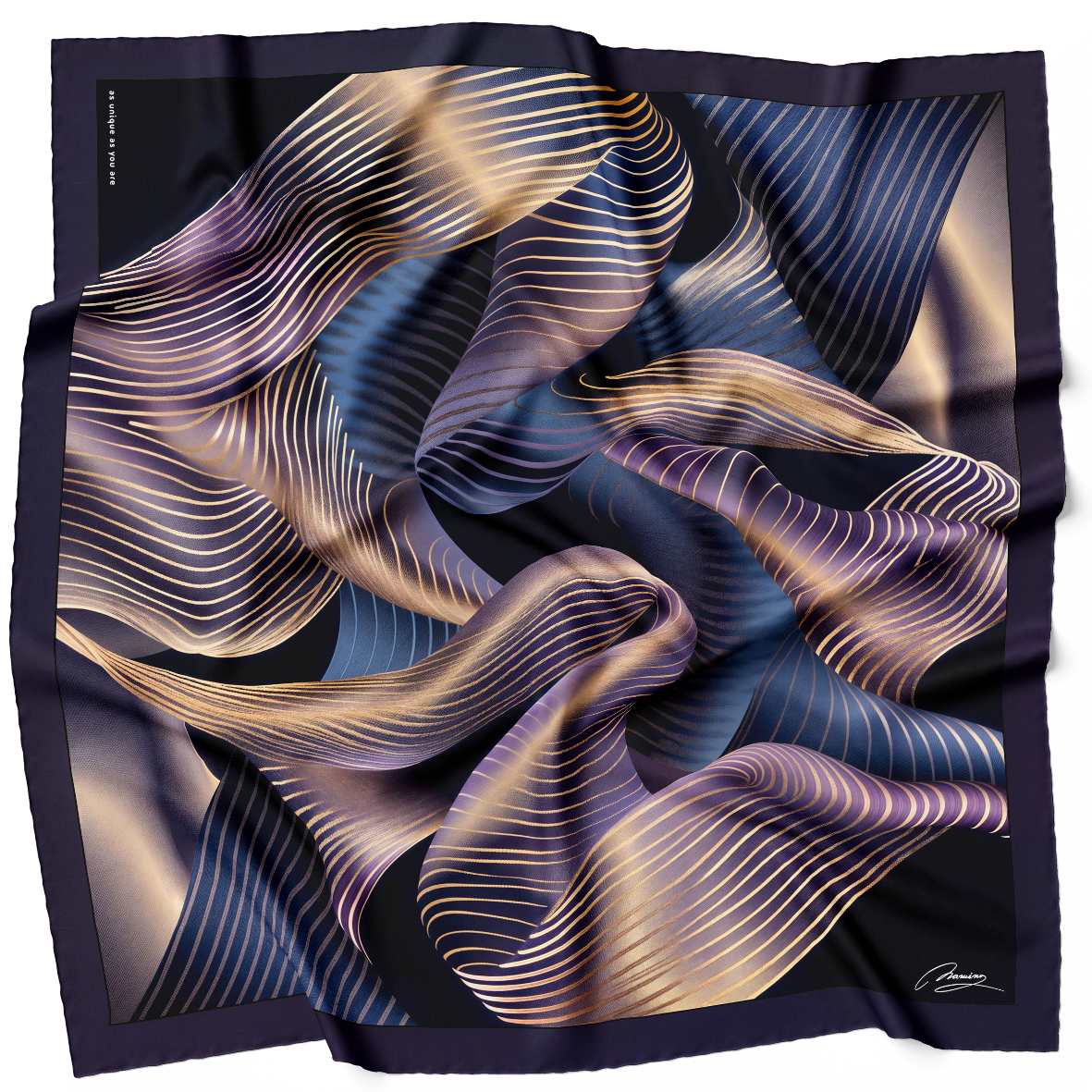 Ponoćni Šapat Bogate nijanse ljubičaste i zlatni detalji oživljavaju ovu maramu, podsećajući na tihu privlačnost ponoći. Unosi osećaj misterije i elegancije u svaki izgled, idealna za večernje nošenje. Nošenje ove marame inspiriše ženu da prigrli s voju unutrašnju snagu i lepotu sa daškom intrige