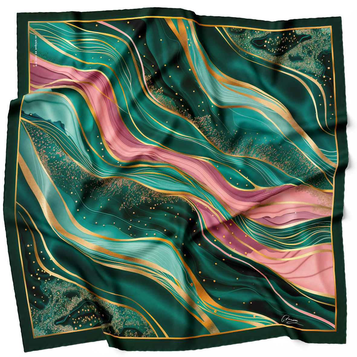 San Pod Zvezdama Ova marama, sa bogatom smaragdno zelenom i sjajnim zlatnim detaljima, budi misteriju i lepotu zvezdane noći. Nošenje je inspiriše osećajom čuda i elegancije, što je čini savršenom za večernje prilike. Suptilan sjaj i duboke nijanse dodaju dašak čarolije svakom izgledu